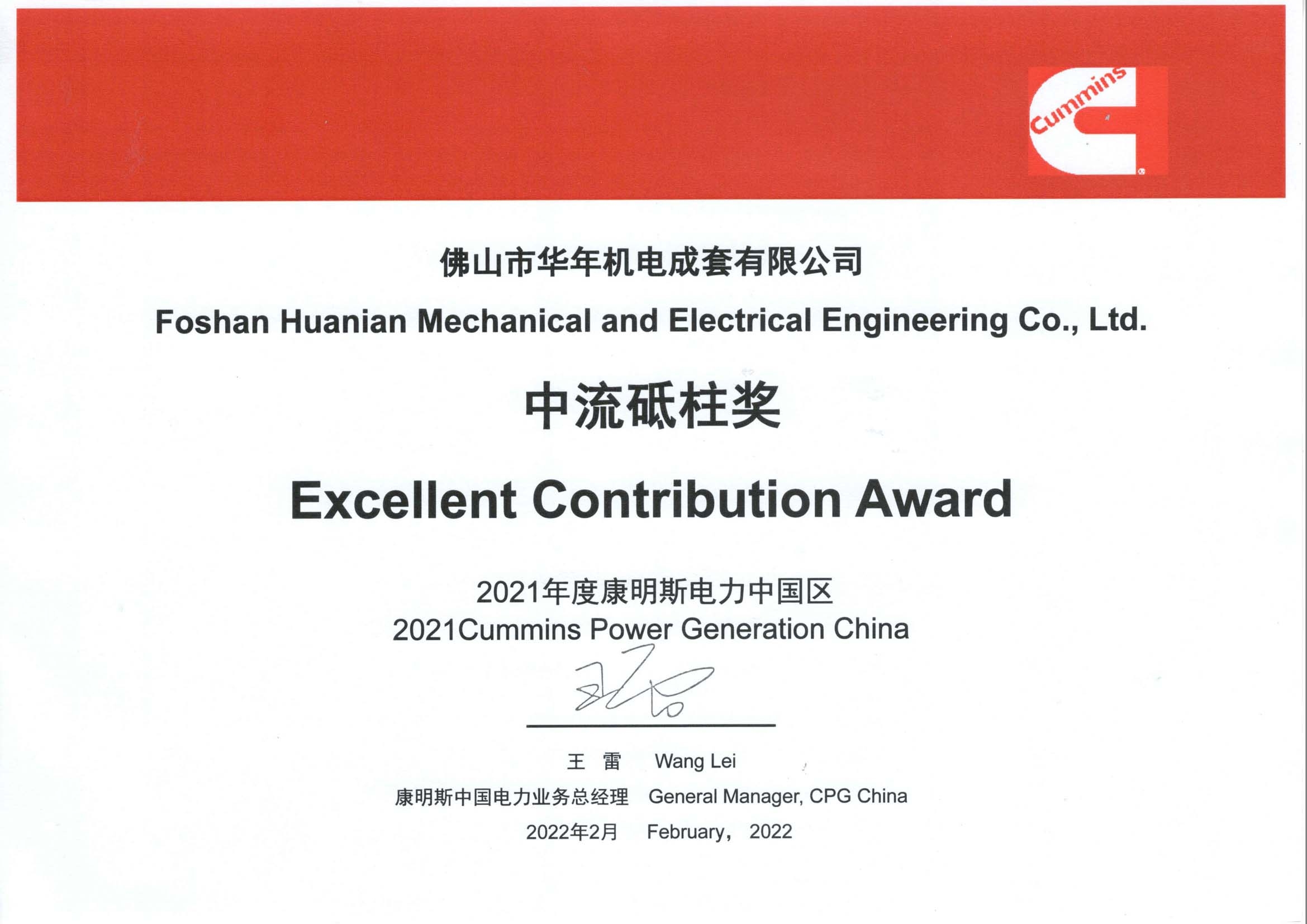 荣获2021年度康明斯电力中国区中流砥柱奖